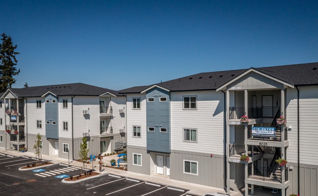 Thanks for checking out Lake Grove Apartments. We are a locally owned and professionally managed newly constructed community in Lakewood, WA. Lake Grove is conveniently located near the Lakewood Towne Center, parks, and an abundance of shopping and dining opportunities. We have studio, 1, 2, and 3-bedroom apartment homes. Our apartment homes are a great value, featuring stainless steel appliances, hard surface counters, instant tankless hot water, 9ft ceilings, walk-in closets, full size washer and dryer, and a private balcony or patio. Our community features EV charging stations, bicycle storage, and a picnic area with park-style grills.